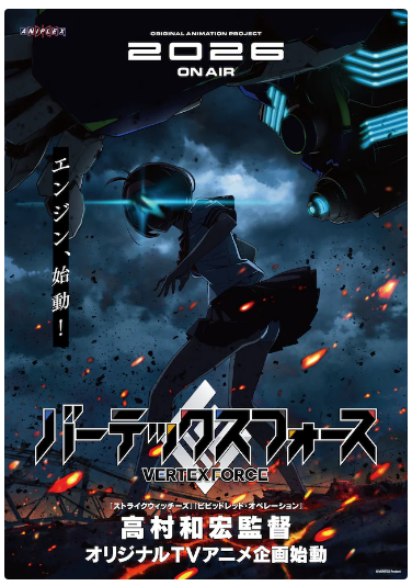 '스트라이크 위치스', '비비드 레드 오퍼레이션' 등 타카무라 카즈히로 감독의 신작 오리지널 TV 애니메이션 '버텍스 포스'가 2026년 방송된다. 이 작품의 티저 비주얼과 티저 PV가 선보였다.